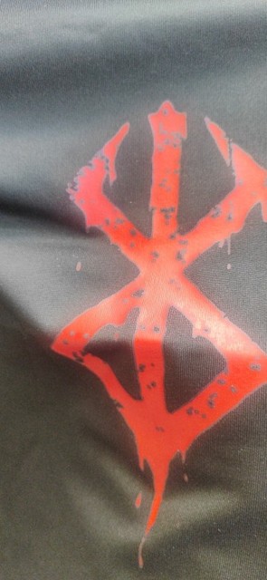 At first sight it looks like a good quality t-shirt for the price, well made and sewed. Only time will tell if it lasts, but so far it looks like good quality and durable material. The “berserk symbol” looks like a stiker, it’s not imprinted on the shirt and it doesn’t look like it’s gonna last for long with usage, especially during washings. Overall it looks like it was worth the price.